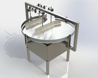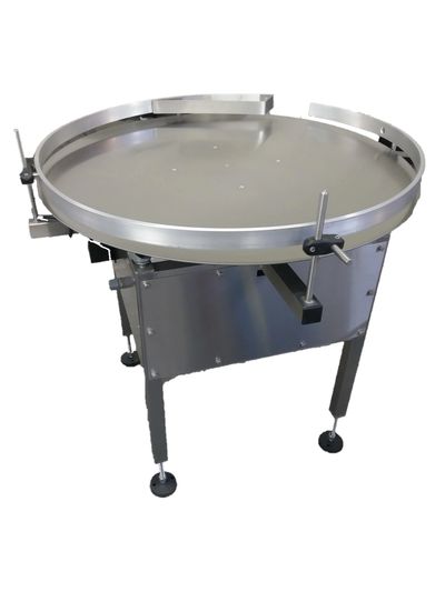 Rotary Feed turntables are designed to load your containers onto the filling machine conveyor. Rotary Feed turntables can be added to your existing line or purchased with a complete filling system. Turntable tops are available in polished stainless steel or polyethylene. They are cut to crate a perfect circle. They are adjustable up to 4 inches. . Our turntables are constructed from the highest quality stainless materials with variable speed drives, reversible rotation, and are height-adjustable.